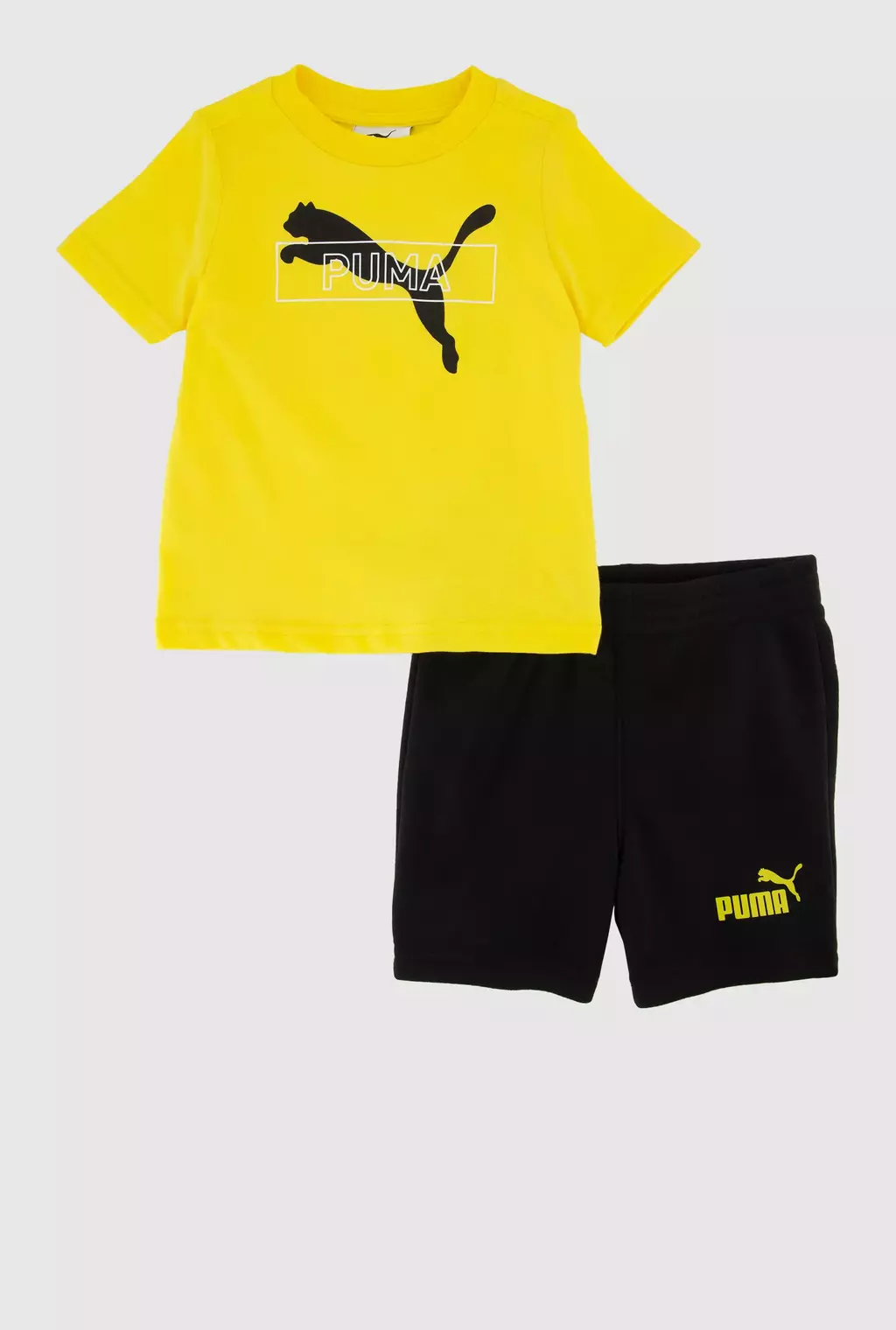 Feito para combinar, este conjunto da Puma é completo com uma camisa de manga curta e short de algodão.