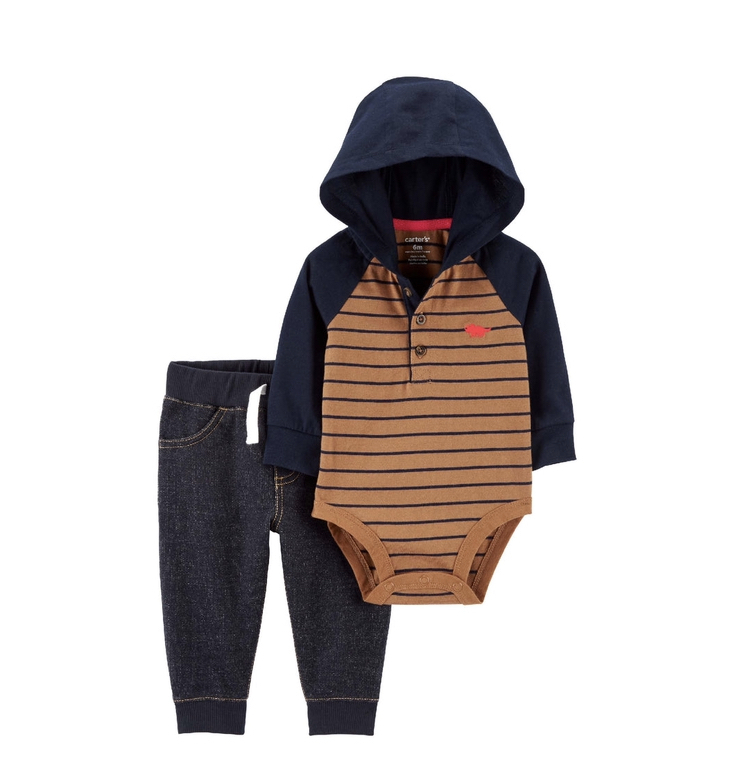 Feito para combinar, este conjunto é completo com body de manga longa e uma calça, confeccionado em algodão com estampas lindas.