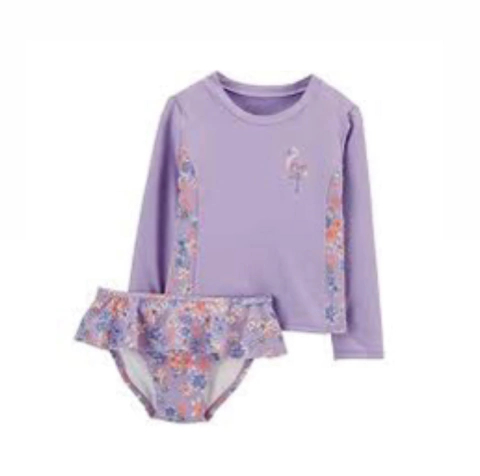 Conjunto infantil de praia da Oshkosh com proteção UV 50+, incluindo blusa de manga longa e calcinha muito confortável. Garantia de segurança e conforto para os pequenos se divertirem ao sol.