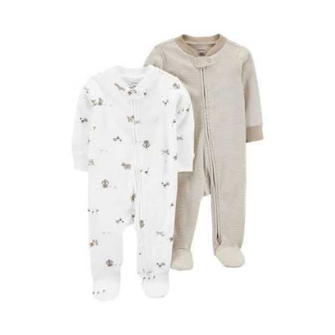 Nosso kit vem com dois macacões super fofinho e confortável, Carter's será a pedida certa para sua criança. Feito de algodão, o pijama conta com fechamento por zíper inverso, possui martingale para garantir proteção e seu grande destaque está em sua estampa lindas.