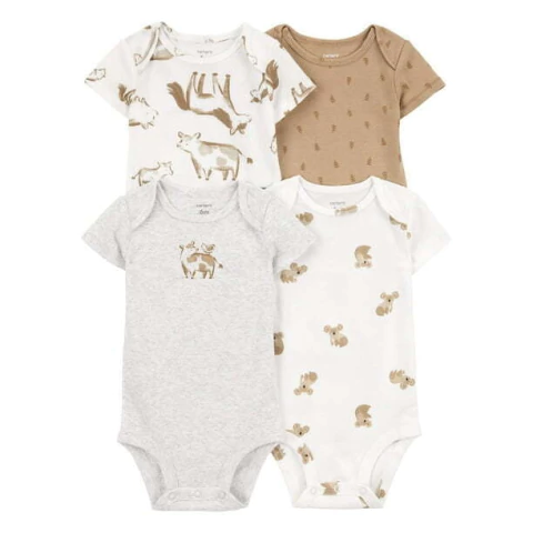 Conheça o Kit 4 Body Carter’s, de manga curta é perfeito para manter seu bebê confortável sempre! Confeccionado em malha macia e confortável, oferece toque suave. Com gola transpassada e os botões de pressão tornam a troca prática e rápida, garantindo conforto e estilo para os pequenos. Um item indispensável para o guarda-roupa do seu bebê, combinando charme e funcionalidade!