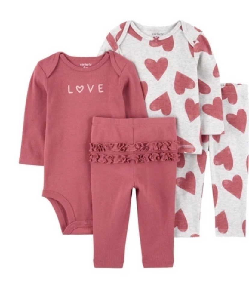Kit 4 peça é feito para combinar, completo com um body de manga longa uma blusa manga longa e duas calças, confeccionado em algodão com estampas lindas.