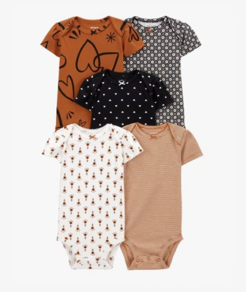 Conheça o Kit 5 Body Carter’s, de manga curta é perfeito para manter seu bebê aquecido nos dias mais frescos ou durante o inverno! Confeccionado em malha macia e confortável, oferece toque suave. Com gola transpassada e os botões de pressão tornam a troca prática e rápida, garantindo conforto e estilo para os pequenos. Um item indispensável para o guarda-roupa do seu bebê, combinando charme e funcionalidade!