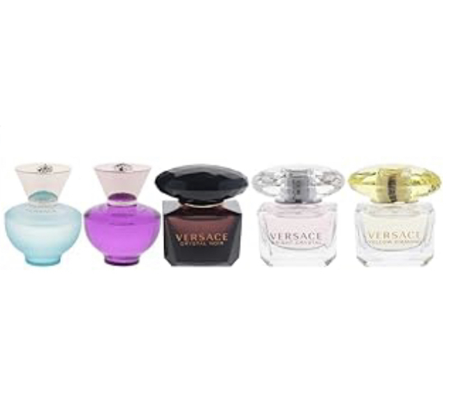 Transforme cada momento com o conjunto mini de 5 fragrâncias Versace. Bright Crystal, Dylan Turquoise, Crystal Noir e mais — uma opção perfeita para cada ocasião. Elegantes, compactos e ideais para levar na bolsa, esses perfumes oferecem luxo e praticidade onde você estiver. Perfeitos para viagens ou retoques ao longo do dia.
