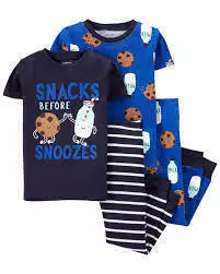 O pijama infantil 4 peças da Carter's é ideal para o descanso das crianças. Composto por duas camisas de manga curta e duas calças, é confeccionado em malha macia e de toque suave, proporcionando conforto para uma noite tranquila de sono.