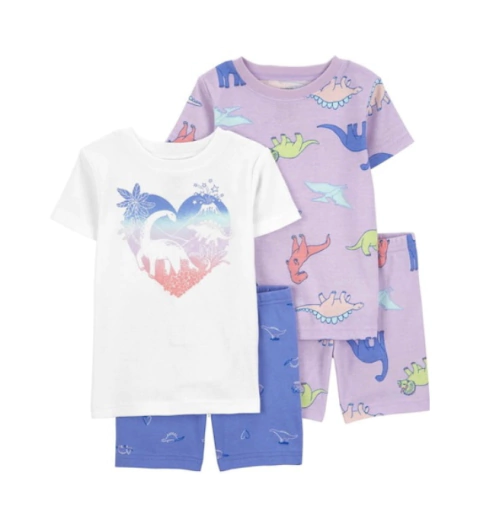 O pijama infantil 4 peças da Carter's é ideal para o descanso das crianças. Composto por duas camisas de manga curta e dois shorts, é confeccionado em malha macia e de toque suave, proporcionando conforto para uma noite tranquila de sono.