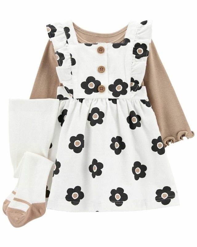 A Salopete da Carter's é a combinação perfeita para sua pequena. O conjunto é composto por três peças super delicadas, sendo uma camisa de manga longa e uma linda salopete canelada e macia e acompanha meia calça. O look perfeito para um passeio.