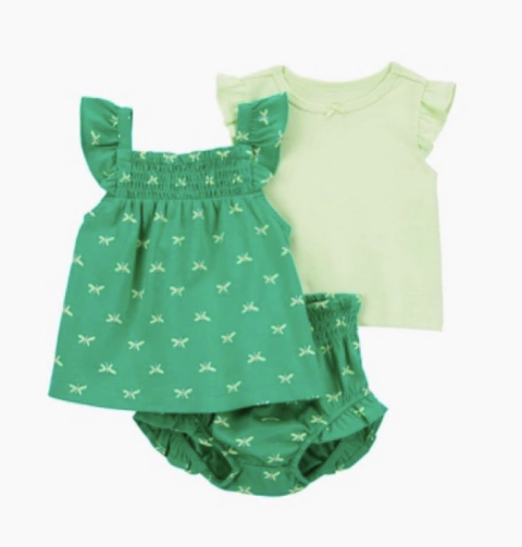 Kit trio Carter’s com um body, short e uma linda blusa, feitos em tecido macio e confortável. Ideal para o dia a dia, com design moderno e estampas encantadoras.